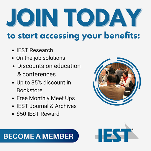 Available to all professionals actively engaged in a field related to IEST. Members gain access to a network of internationally recognized experts, standards development, and savings on publications, conferences, and training programs - Annual Dues: $210